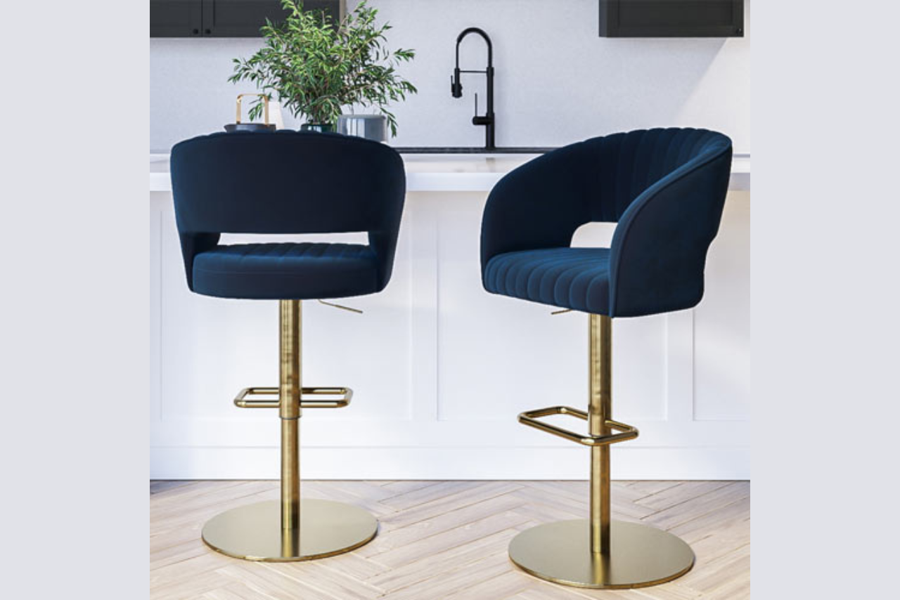 Navy Blue Velvet Bar Stool with Back – 77cm – Macie