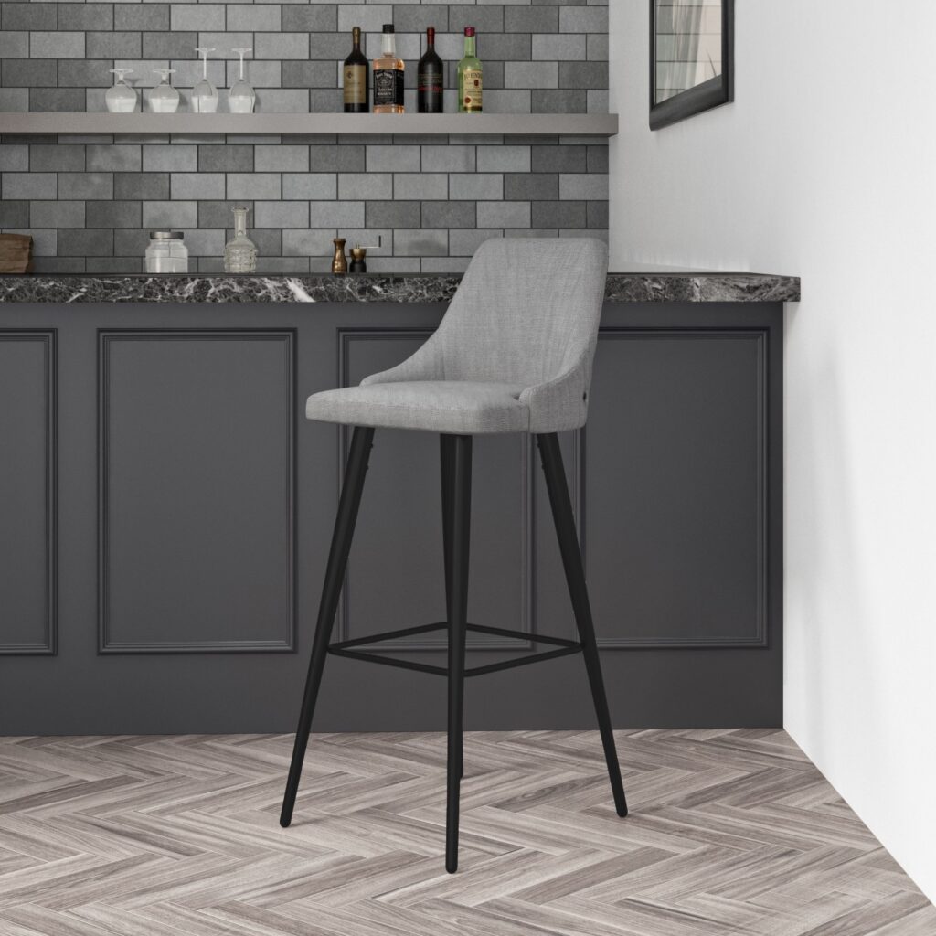 Grey Fabric Bar Stool with Back – 79 cm – Maddy
