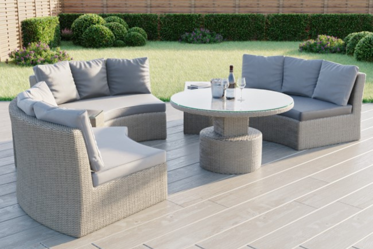 2 Seater Grey Garden Rattan Modular Bistro Set & Lounger – Fortrose