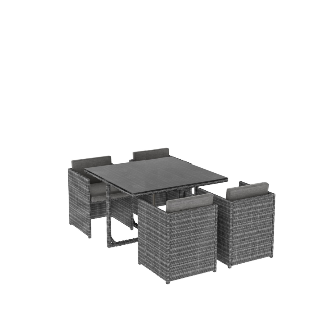 GRADE A1 – 4 Seater Dark Grey Rattan Cube Garden Dining Set – Fortrose