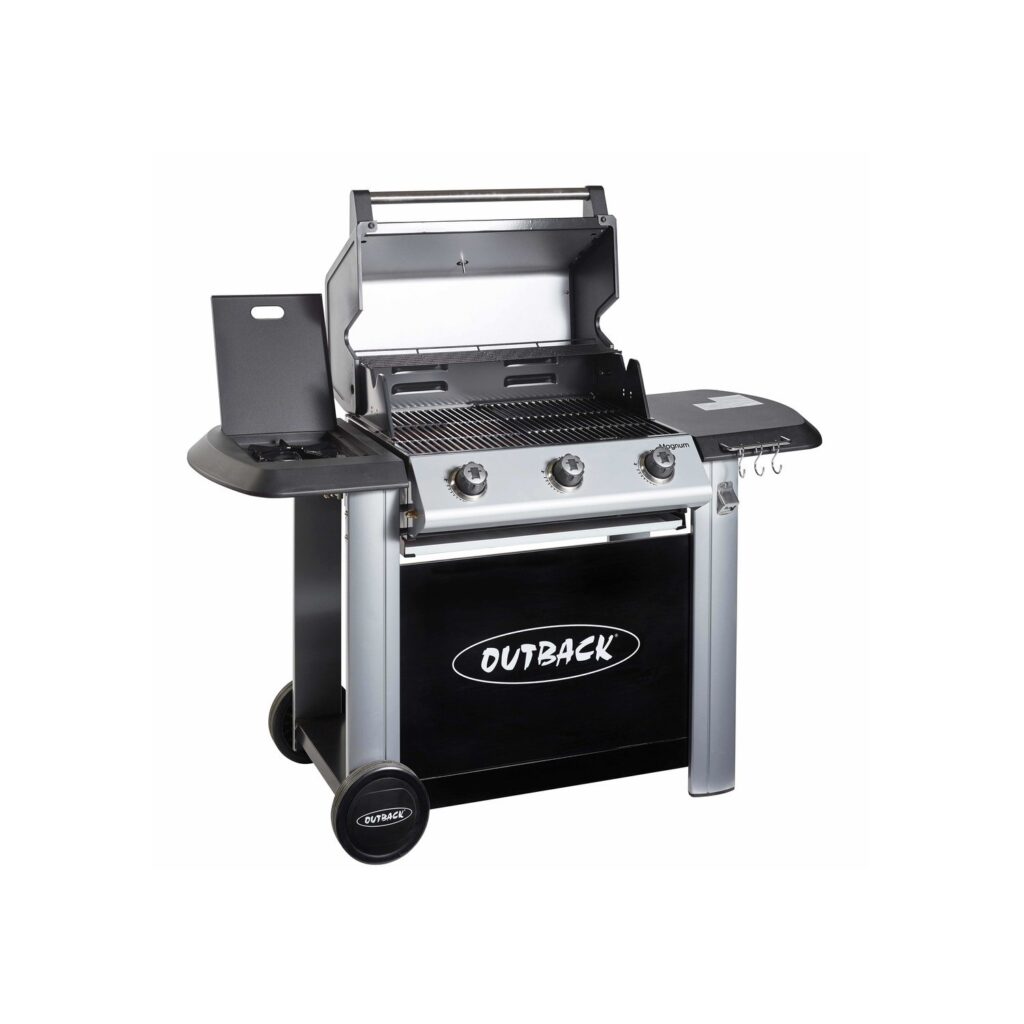 Outback Magnum – 3 Burner Gas BBQ Grill with Side Burner – Black & Silver