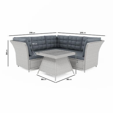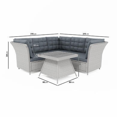 4 Seater Grey Garden Corner Sofa Set with Armchair and Table - Como