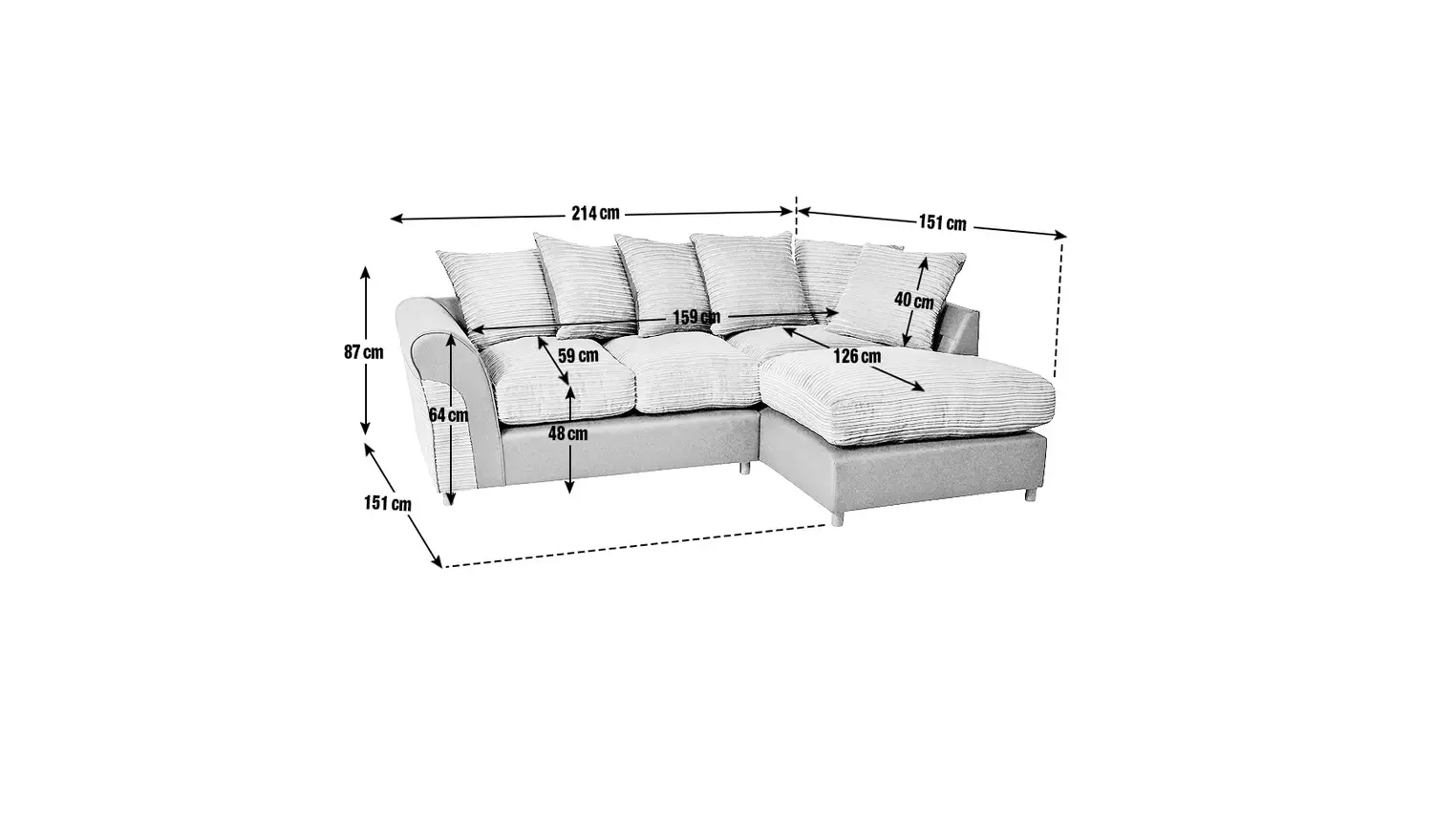 This Harry corner sofa is roomy enough for everyone to sink into. Great for families, this easy-going collection is upholstered in soft jumbo cord and durable leather effect fabric. Easy to clean and resistant to wearing, the seat cushions are a mix of foam and fibre for ultimate comfort and relaxation.
