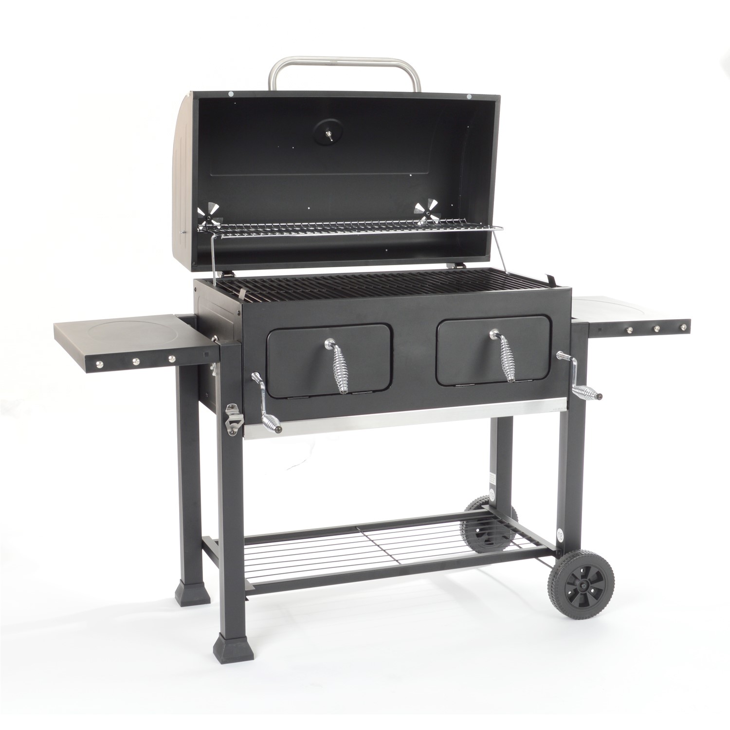 • Two height adjustable charcoal trays