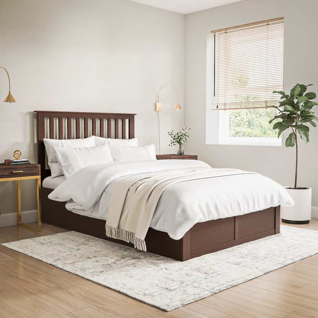 Walnut Wooden Double Ottoman Bed – Anderson Color-Brown