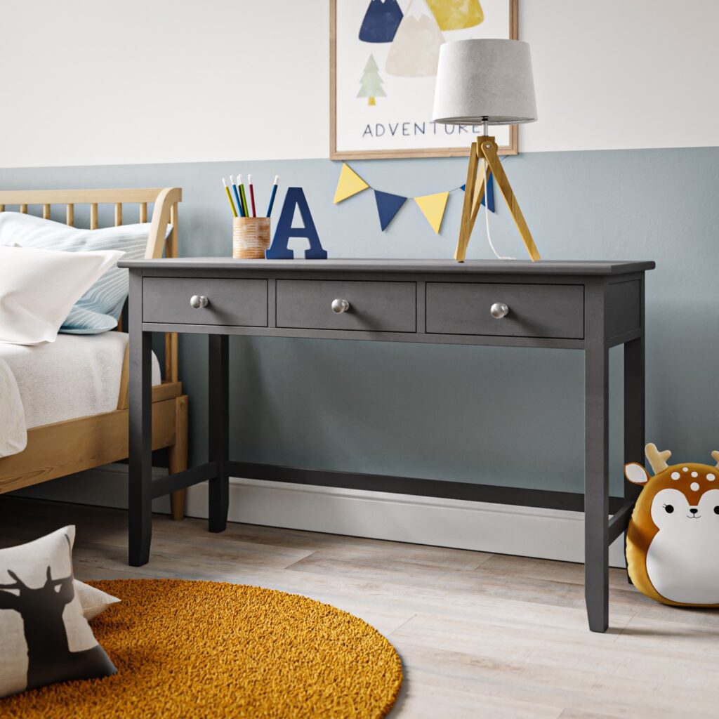 Kids Grey Solid Wood Desk with 3 Drawers – Harper