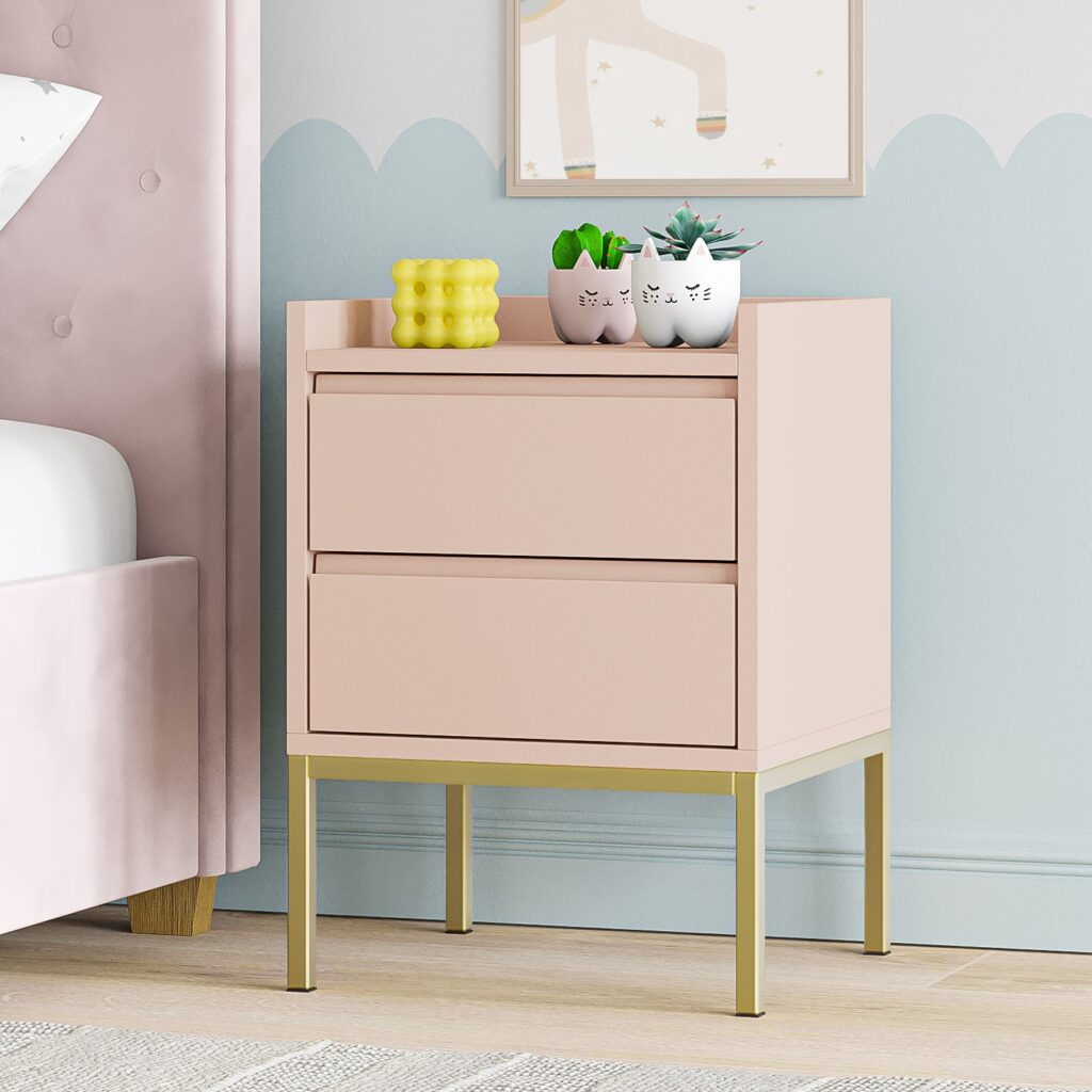 Kids White High Gloss 2 Drawer Bedside Table – Lyra