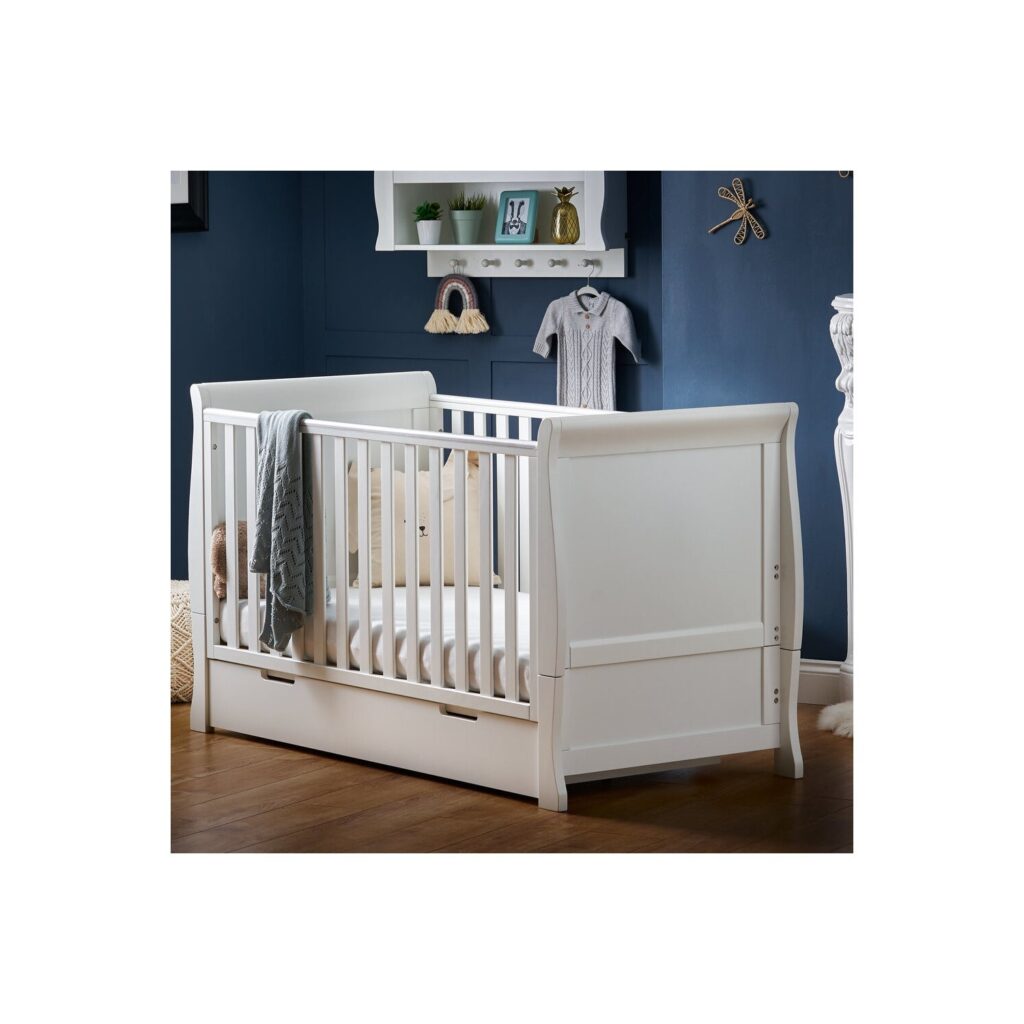 Stamford White Sleigh Cot Bed with Drawer – Obaby